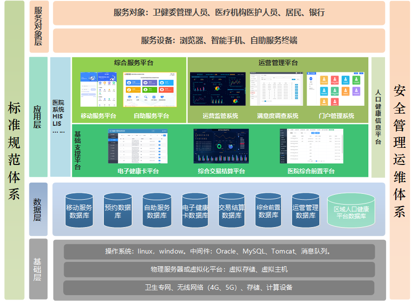 綜合服務(wù)平臺:預約診療服務(wù)系統(tǒng)、區(qū)域衛(wèi)生移動服務(wù)系統(tǒng)、區(qū)域衛(wèi)生自助服務(wù)系統(tǒng)。