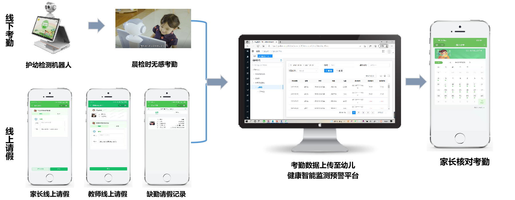入園時(shí)自動(dòng)識(shí)別兒童信息,完成考勤簽到,可兼顧刷卡考勤等多種選擇。